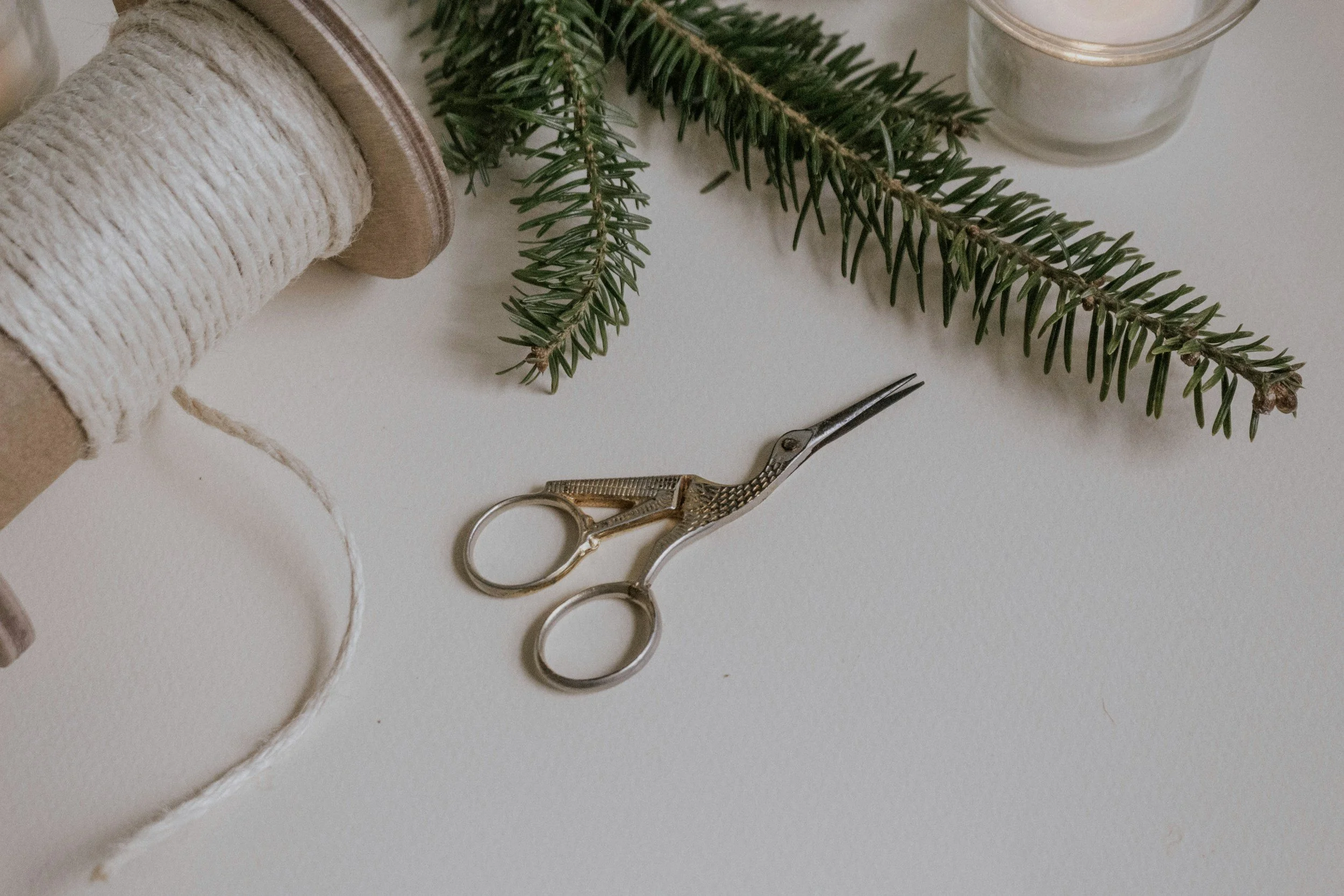 Any kind of small scissors for snipping the ends of threads. Storks are traditional (it's actually a very interesting story of how they relate to cutting the umbilical cords by midwifes back in the day). Of course, use whatever you have already on hand, or whatever design you like.